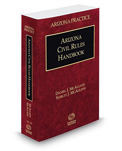 Arizona Civil Rules Handbook provides Arizona practitioners with a comprehensive guide to civil litigation practice, and answers the questions that most frequently arise in civil practice. This item also includes: The full text of Arizona Rules of Civil Procedure The full text of Arizona Rules of Evidence Comments following each rule that explain the rule s origin and purpose Citations to pertinent cases The Civil Rules Correlation Table, showing new location of rules transferred in consolidation process